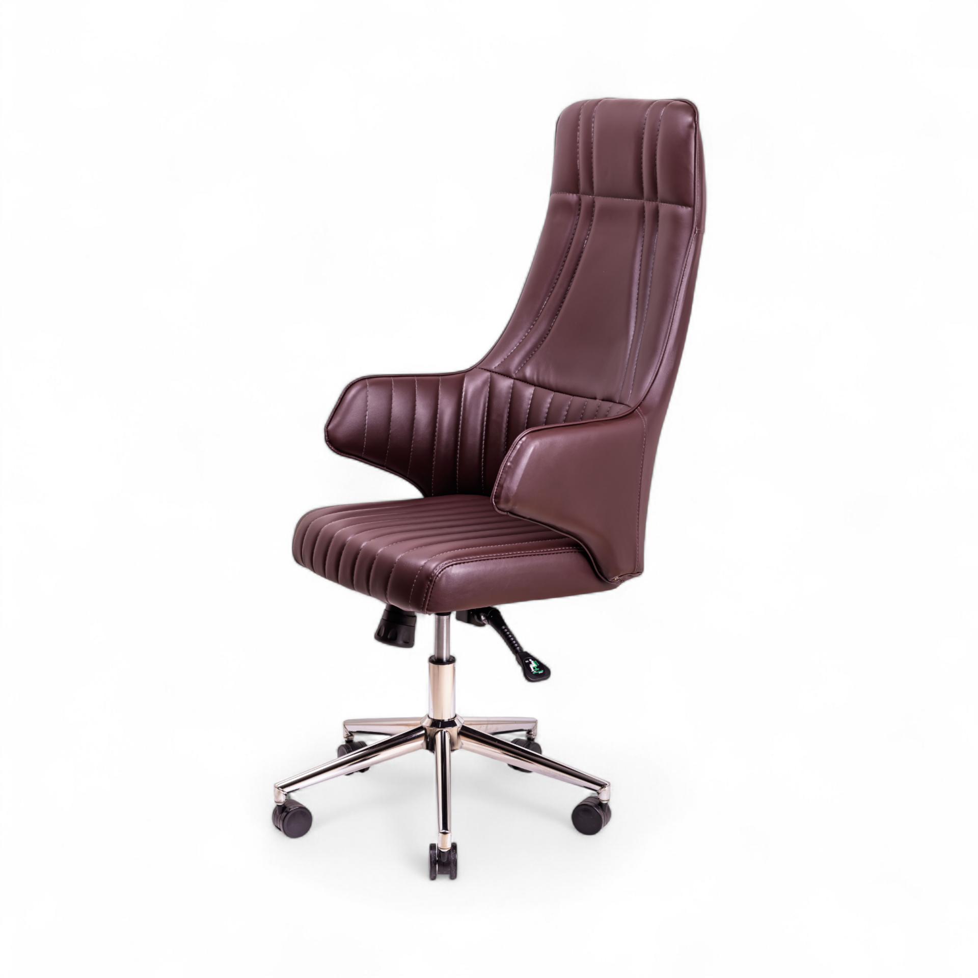 Avcı Yönetici Koltuğu, sıradan tasarımların dışına çıkarak ofisine dinamik ve karakterli bir stil katmak isteyen liderler için özel olarak tasarlanmıştır. Koltuğun sırt ve oturum bölümündeki dikey kanal dikişleri, retro bir zarafet sunarken, modern ve akıcı hatlarıyla günümüz estetiğini yakalar. Zengin kahverengi tonundaki deri döşemesi, mekana sıcak ve prestijli bir atmosfer kazandırır.