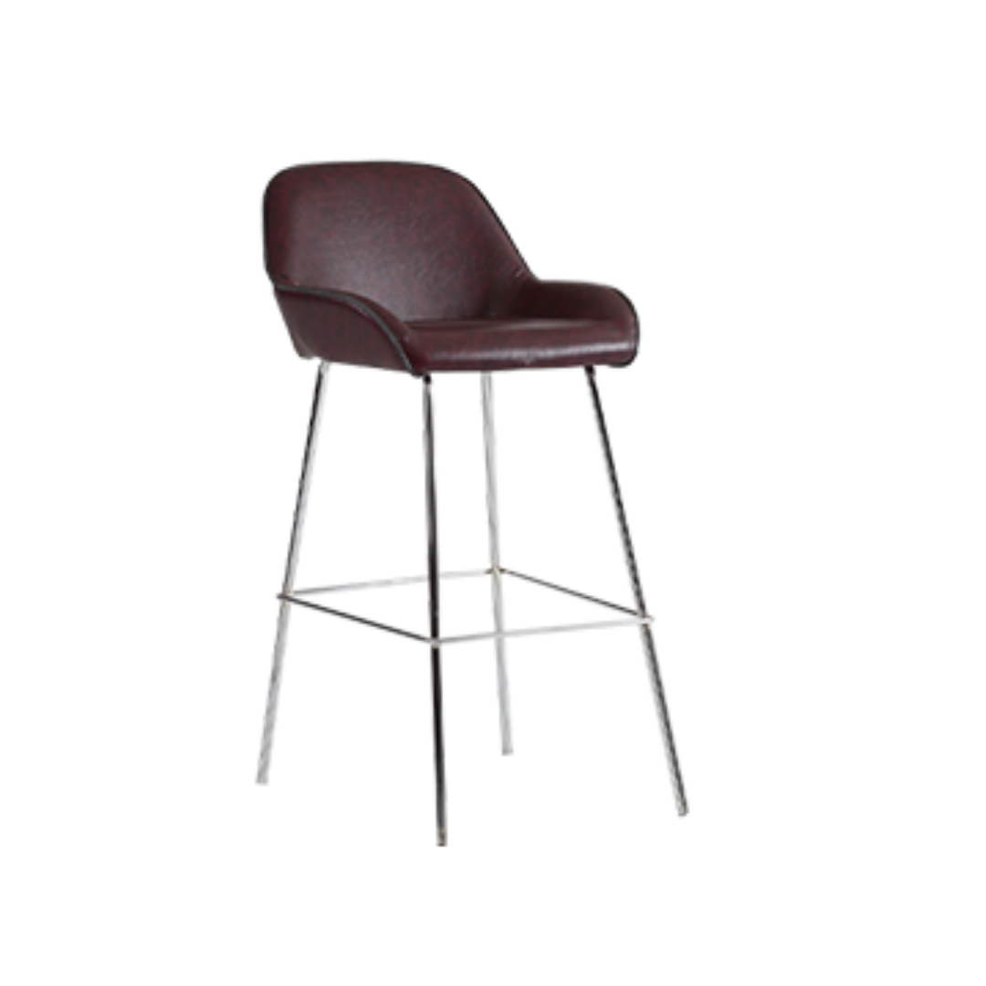 Büronzi Bar Tabure, çağdaş sosyal alanlar için tasarlanmış, bordo deri görünümlü döşemesi, parlak krom ayakları ve ergonomik sırtlık yapısıyla öne çıkan şık bir bar taburesidir. İnce kabuk formundaki oturma yüzeyi, konforlu mini kolçakları ve yüksek ayak yapısıyla kullanıcılara rahat bir oturma deneyimi sunarken, bordo-krom kombinasyonu ile mekanınıza sofistike ve lüks bir görünüm kazandırır.