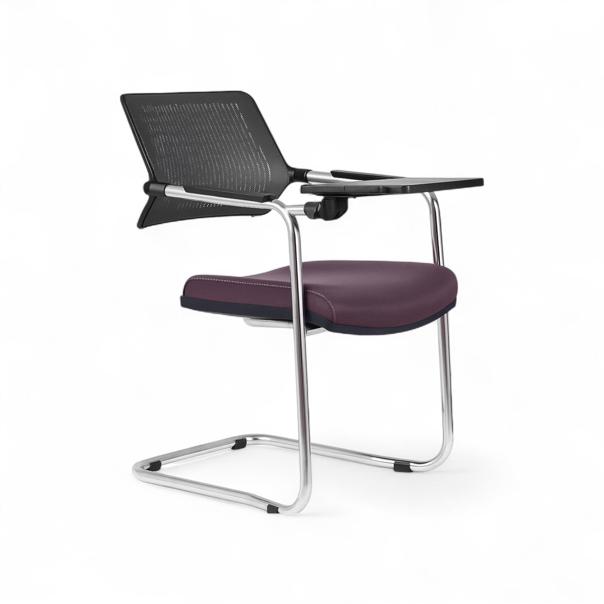 Nefes alabilen file sırt yapısı, uzun süreli oturumlarda bile konforu garanti ederken, sofistike mor renkteki deri oturağı mekana profesyonel bir şıklık katar. Sağlam krom metal çerçevesi, hem modern bir görünüm sunar hem de yoğun kullanıma karşı dayanıklılık sağlar. İstiflenebilme özelliği sayesinde, kullanılmadığı zamanlarda kolayca depolanarak alandan tasarruf etmenize olanak tanır.