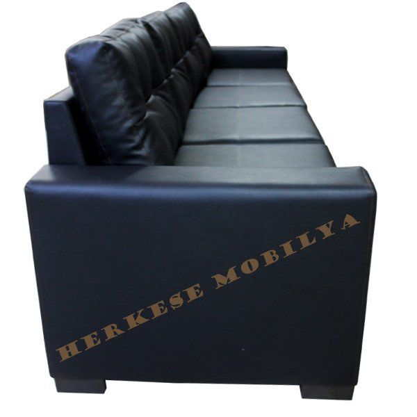Dune Siyah Deri Dörtlü Ofis Kanepesi