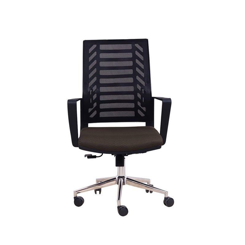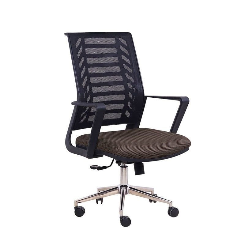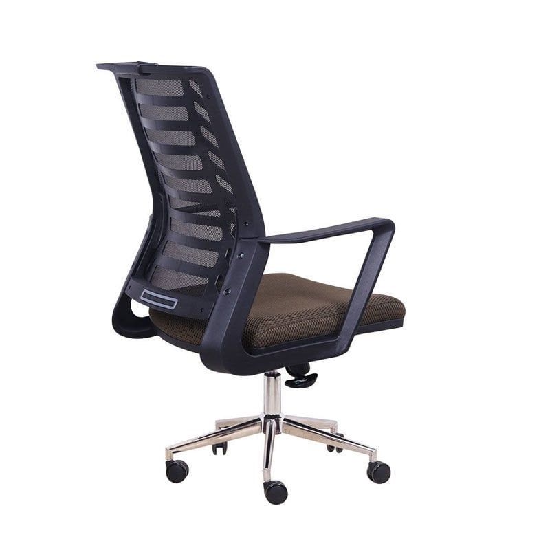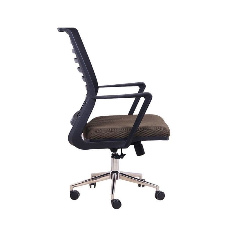 • Kahverengi kumaş oturma yüzeyi ile siyah file sırt desteği arasında zarif kontrast • Siyah plastik gövde ve kolçaklar ile bütünsel bir tasarım dili • Parlak krom beş kollu taban ile modern ve profesyonel bir duruş • Siyah-kahverengi renk kombinasyonu ile sıcak ve profesyonel bir ofis görünümü • Kompakt boyutları ile her çalışma alanına uyum sağlayan akıllı tasarım