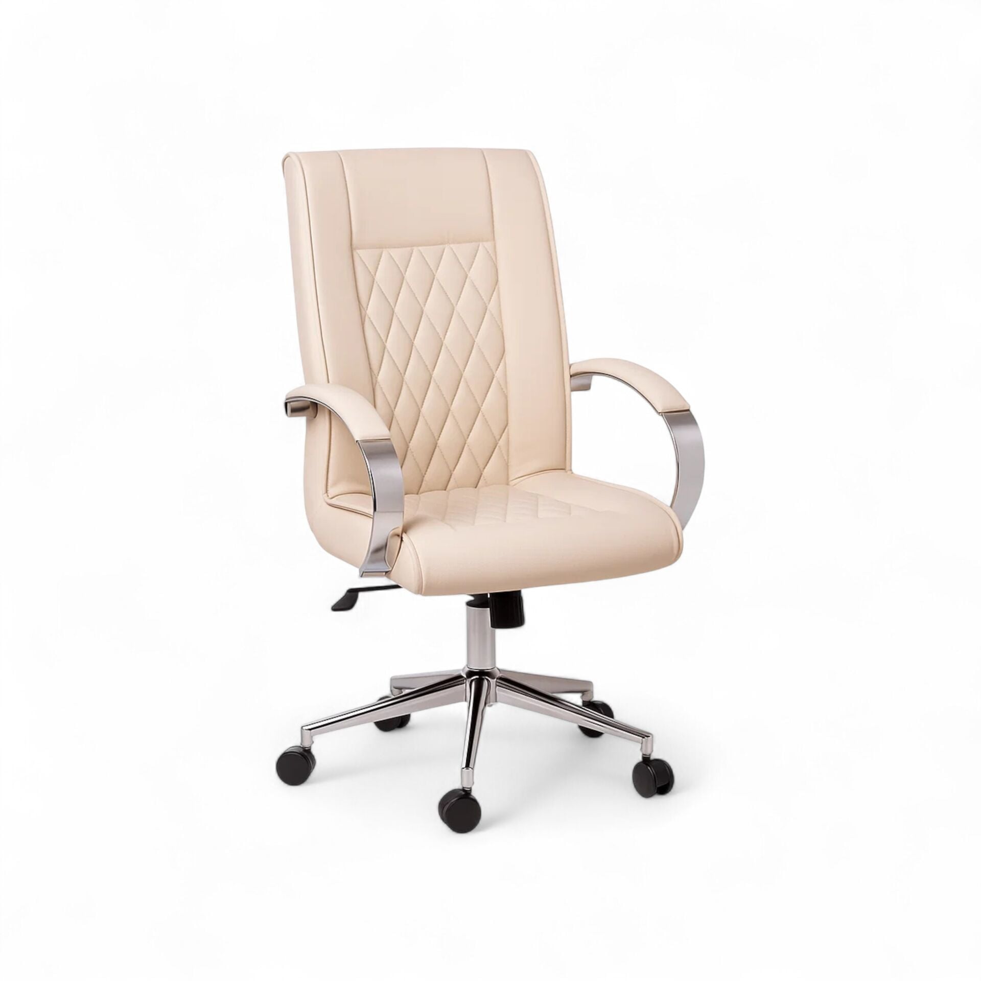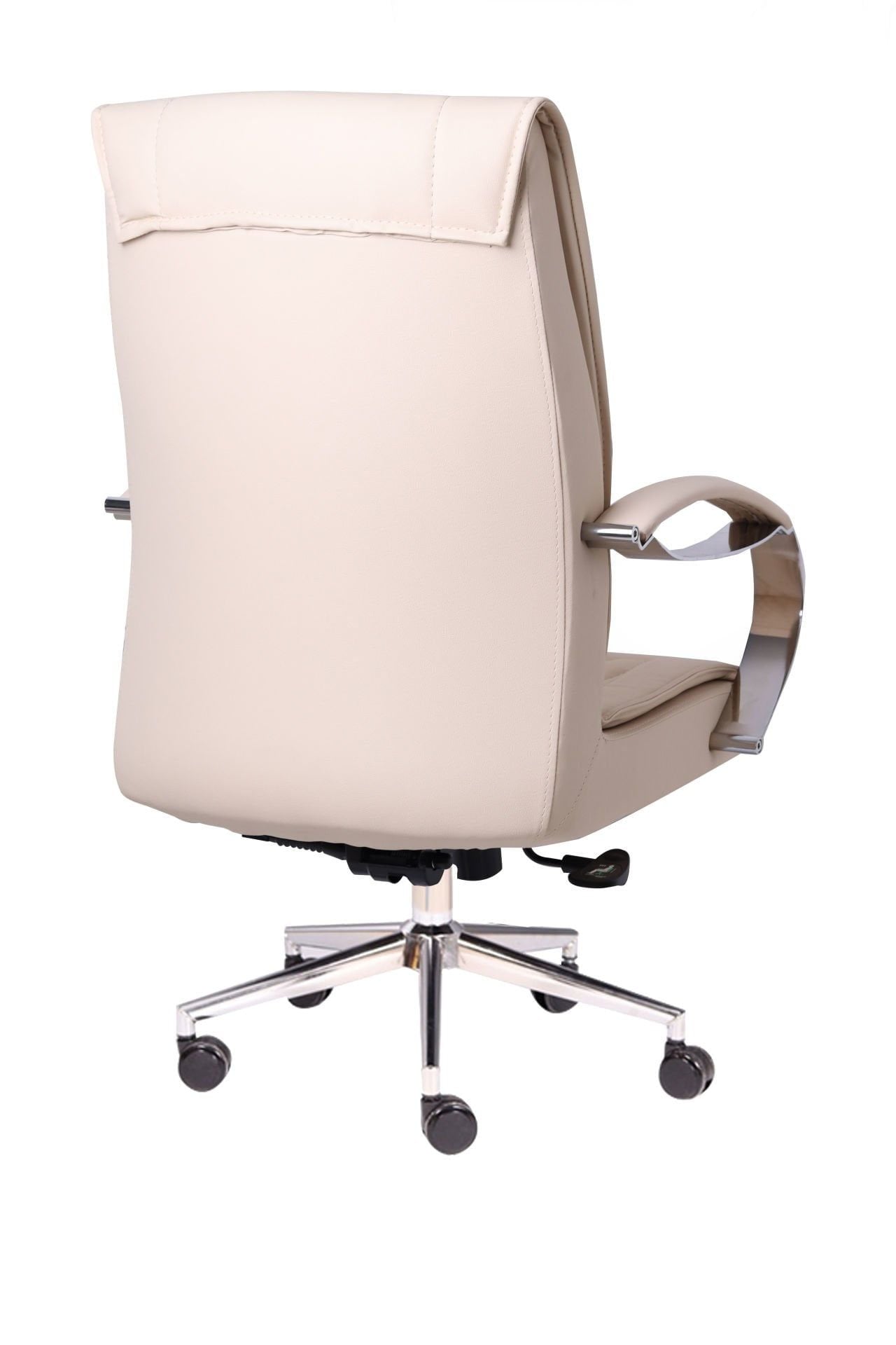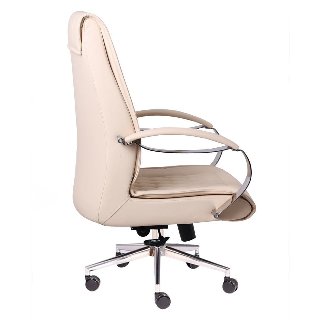 Interstellar Çalışma Koltuğu, modern tasarım çizgilerini lüks detaylarla birleştirerek çalışma alanlarına sofistike bir dokunuş katıyor. Oturum ve sırt alanındaki göz alıcı **baklava dilimi kapitone dikişler**, koltuğa zengin bir doku ve klasik bir zarafet kazandırır. Krem rengi deri döşemesi, parlak krom detaylarla mükemmel bir uyum sergileyerek ferah ve aydınlık bir atmosfer yaratır.