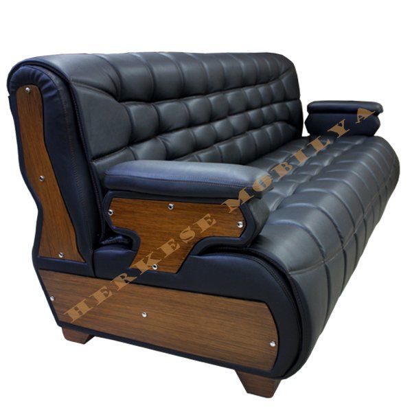 Jaguar Siyah Deri Üçlü Ofis Kanepesi, ofis bekleme alanları, resepsiyonlar ve lounge bölgeleri için ideal bir mobilya parçasıdır. Yüksek kaliteli siyah deri kaplama ile üretilmiş bu kanepe, tufted (düğmeli) tasarımı sayesinde hem estetik bir görünüm sunar hem de uzun ömürlü kullanım sağlar. Üç kişilik kapasitesiyle geniş oturma alanı yaratan Jaguar, modern ofis dekorasyonuna mükemmel uyum sağlar. Dayanıklı ahşap ayakları sayesinde stabilite ve zarafet bir arada tutulmuştur. Bu kanepe, yoğun kullanım alanlarında bile formunu korur ve konforlu bir oturma deneyimi sunar.