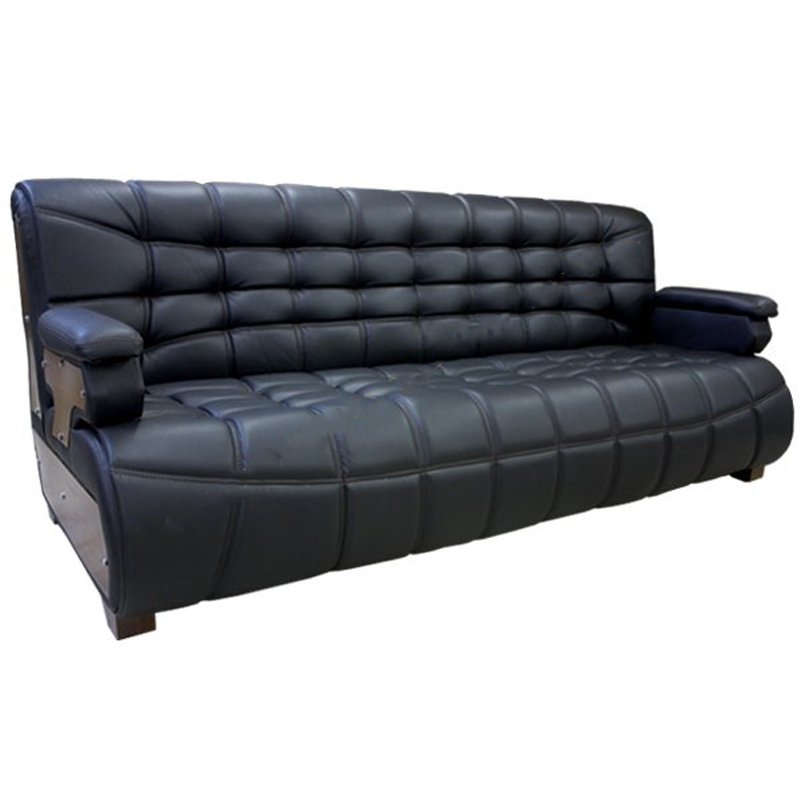 Jaguar Siyah Deri Üçlü Ofis Kanepesi