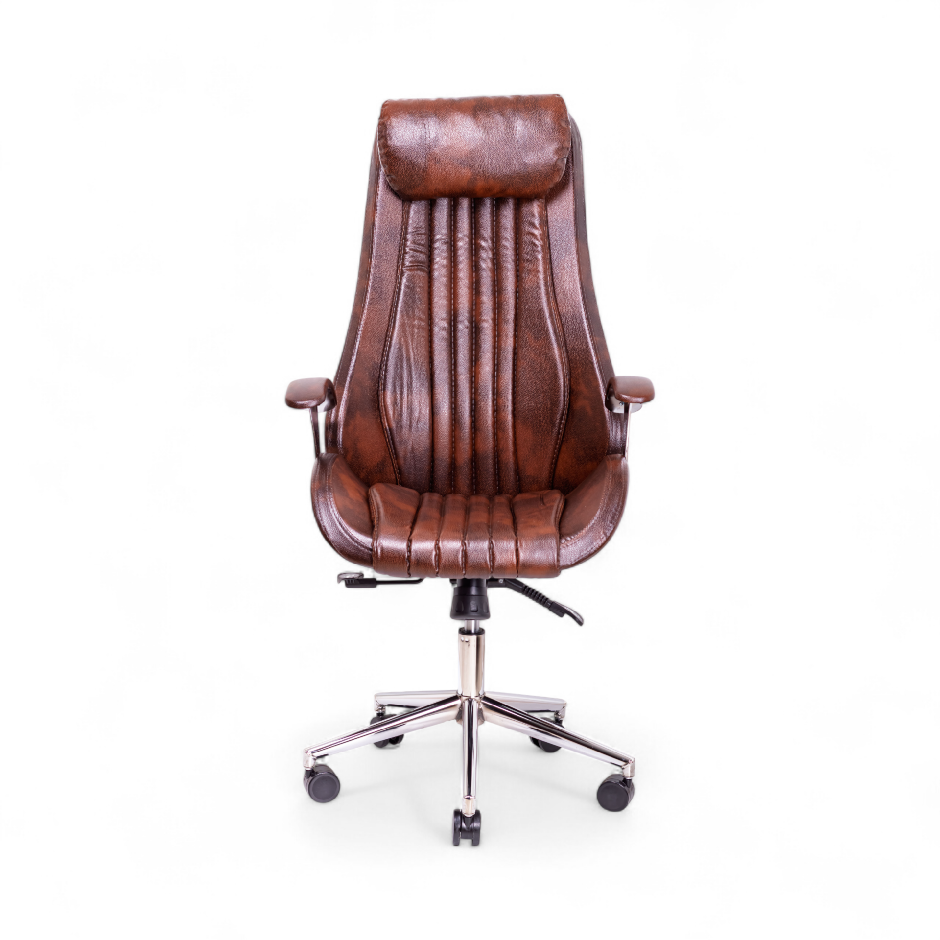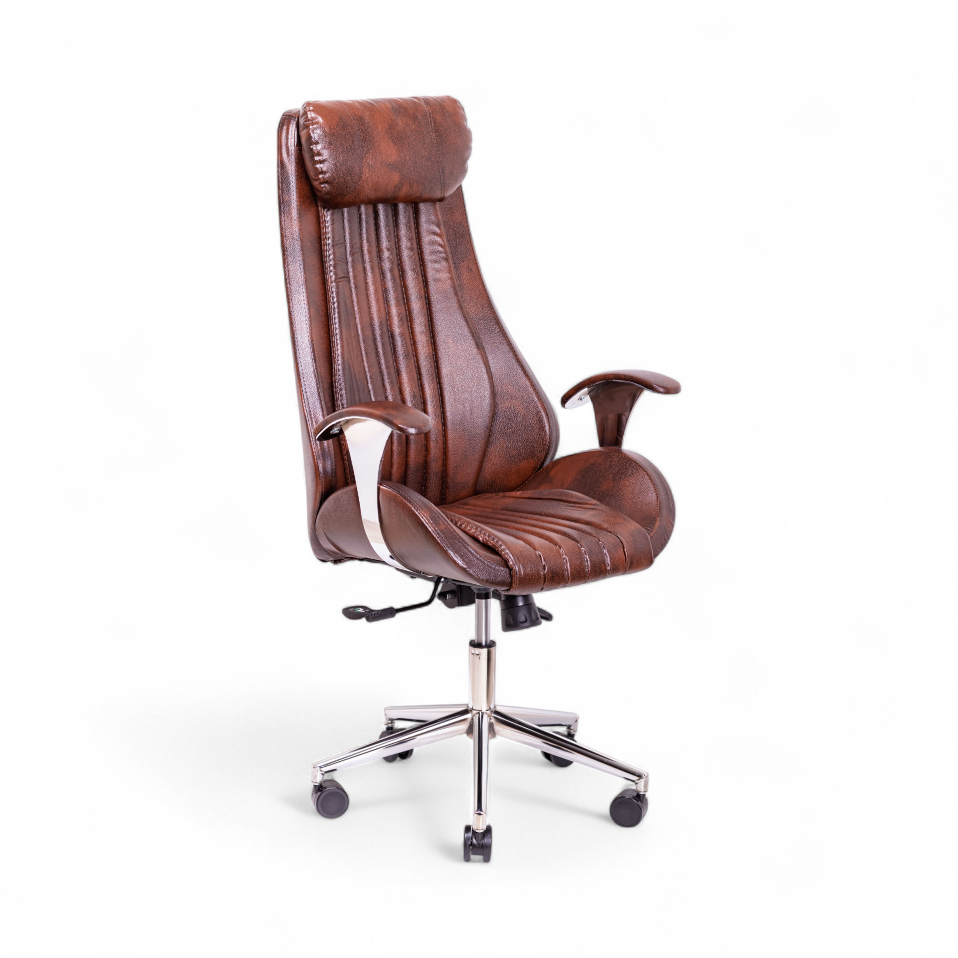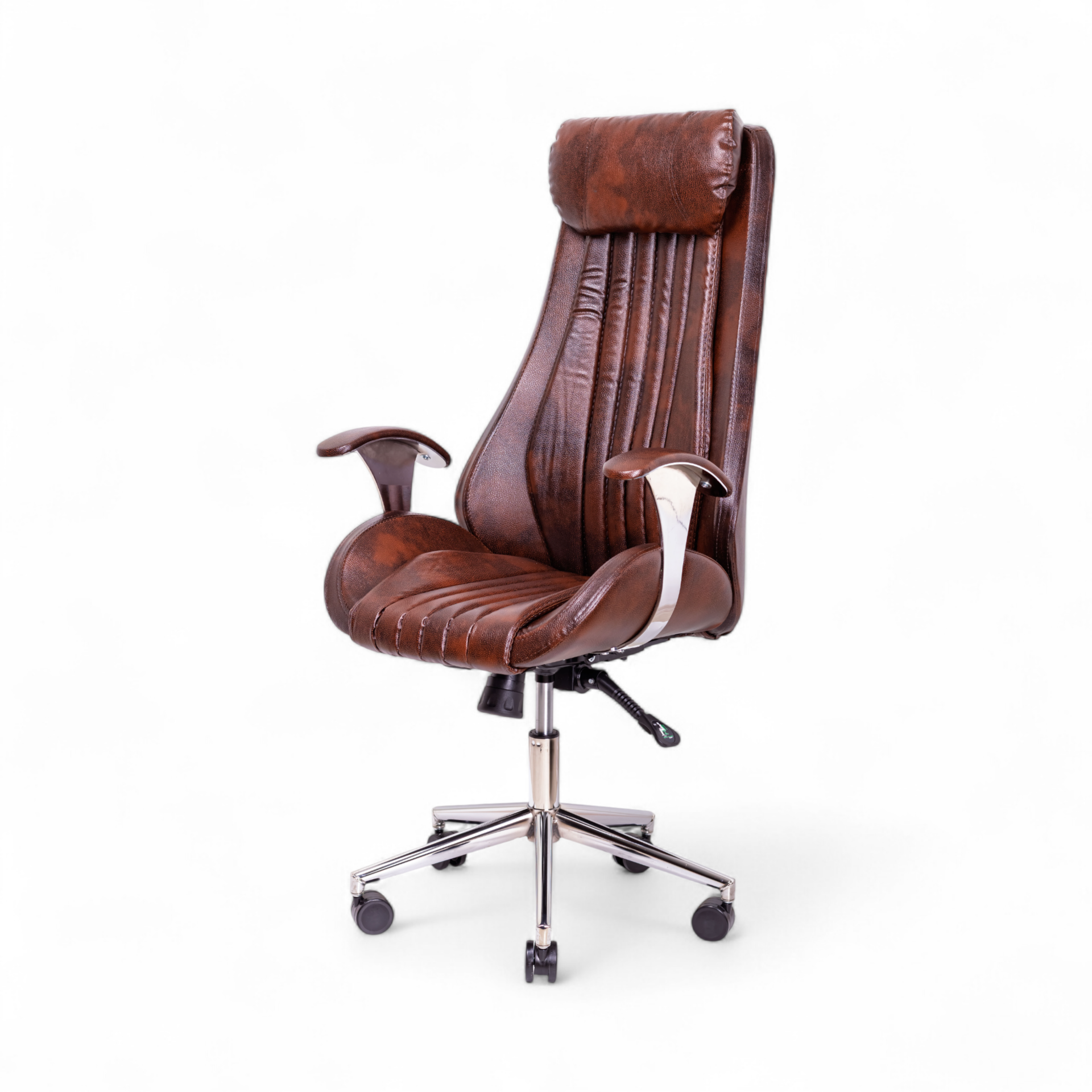 KPT Yönetici Koltuğu, konforu ve gösterişli tasarımı ön planda tutan liderler için tasarlanmış, üst segment bir makam koltuğudur. Zengin kahverengi tonlarındaki dokulu deri yüzeyi, koltuğa derinlikli ve karakterli bir görünüm kazandırır. Ekstra dolgun yapısı ve vücudu saran ergonomik formu, gün boyu süren yoğun çalışma temposunda bile benzersiz bir rahatlık sunar.