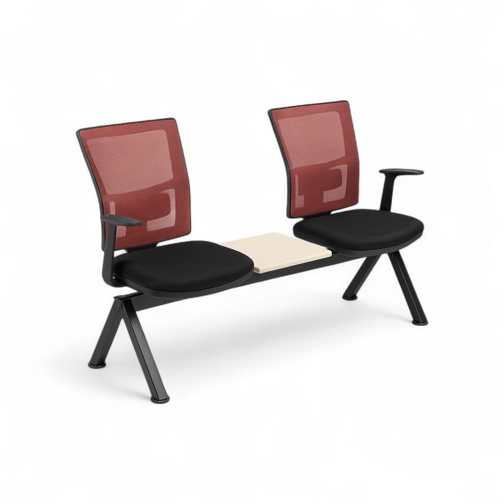 Lasa İkili Sehpalı Bekleme Koltuğu, şık ve fonksiyonel tasarımıyla ofislerde ve bekleme alanlarında mükemmel bir tercihtir. İkili oturum alanı ve arasında bulunan sehpa ile pratik kullanım sunar. Siyah ve kırmızı renk kombinasyonu ile modern bir görünüm sağlar. Dayanıklı metal ayakları ve ergonomik sırt desteği ile uzun süreli kullanımda konfor sunar.