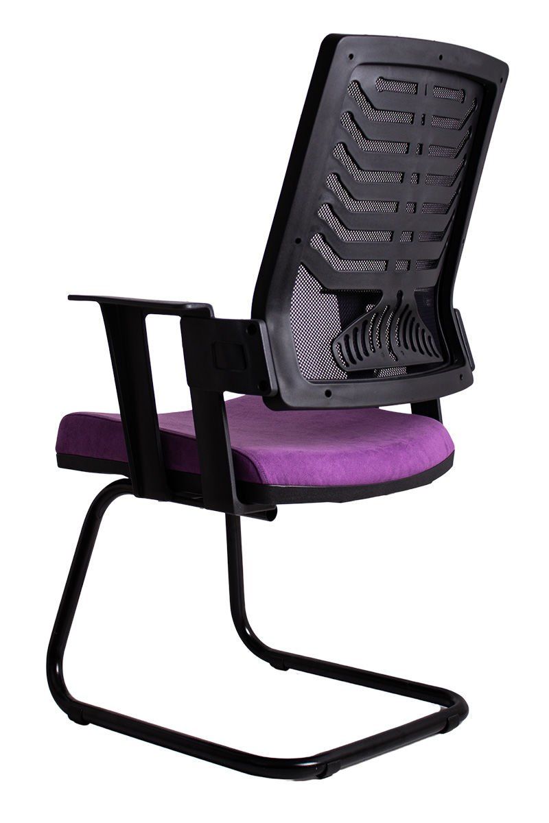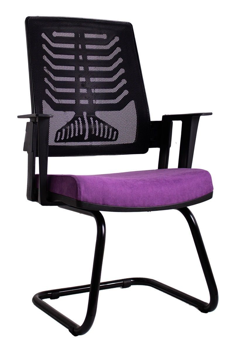 • Yüksek kaliteli siyah file sırt desteği • Aşınmaya dayanıklı mor kumaş kaplı oturma minderi • Dayanıklı siyah plastik gövde ve kolçaklar • Mat siyah toz boya kaplama metal kızak ayaklar • Yüksek yoğunluklu sünger dolgu • Zemin koruyucu plastik ayak tamponları