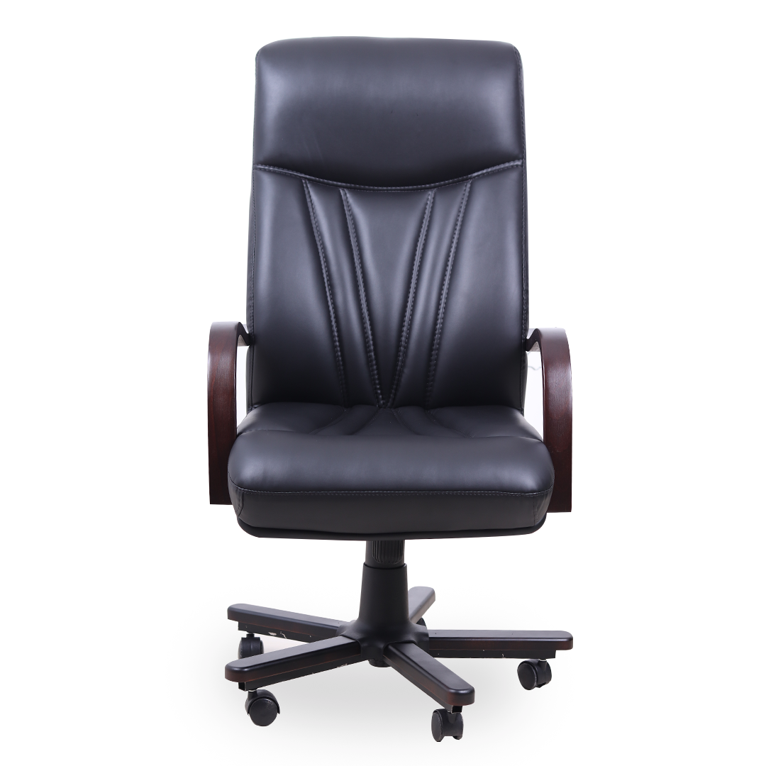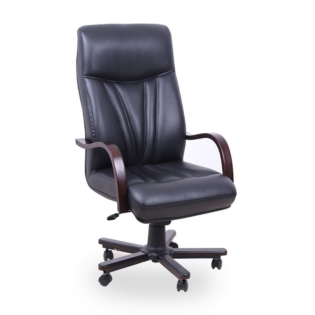 NoirBoss Ahşap Siyah Deri Yönetici Ve Ofis Koltuğu