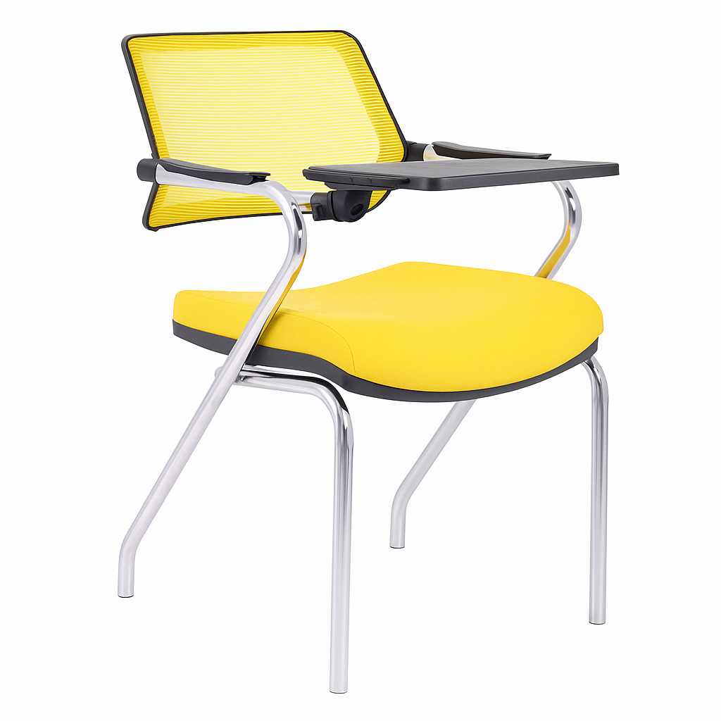 Rauna Eğitim Sandalyesi, çok amaçlı salonlar, seminer odaları ve eğitim kurumları için maksimum fonksiyonellik sunmak üzere tasarlanmıştır. Entegre katlanır yazı tablası, katılımcılara not almak veya tablet kullanmak için ergonomik bir yüzey sağlarken, katlanabilir oturağı sayesinde sandalyelerin iç içe geçerek depolanmasına olanak tanır.