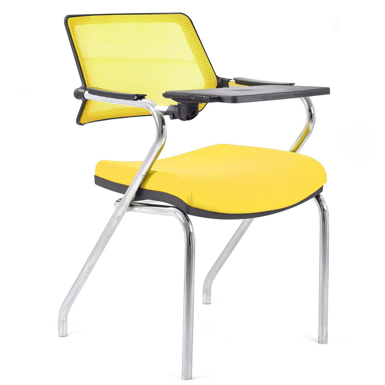 Nefes alabilen sarı file sırt yapısı, uzun süreli oturumlarda bile konforu garanti eder ve mekana enerjik, pozitif bir atmosfer katar. Sağlam krom metal çerçevesi, hem modern bir görünüm sunar hem de yoğun kullanıma karşı dayanıklılık sağlar. Rauna, esnek, pratik ve yerden tasarruf sağlayan bir çözüm arayan kurumlar için idealdir.