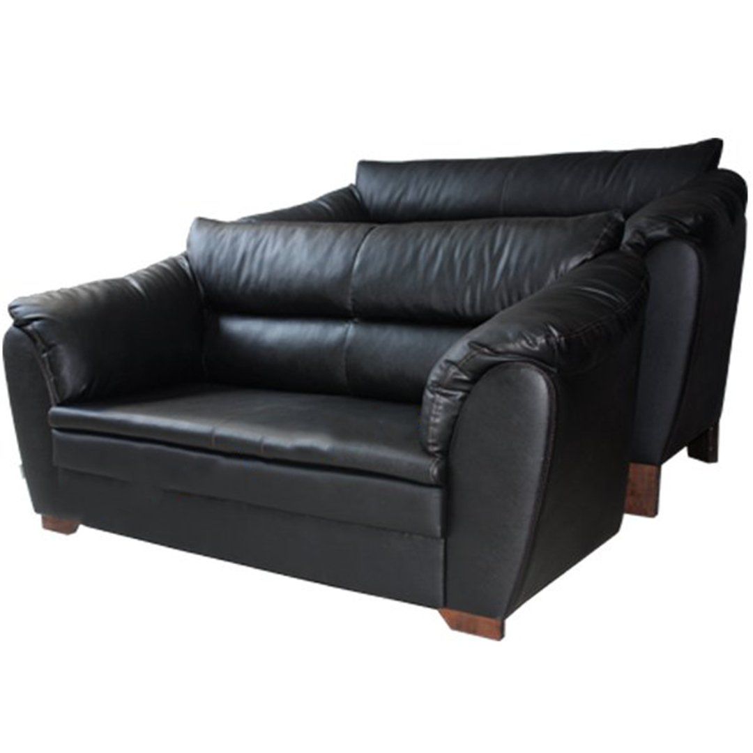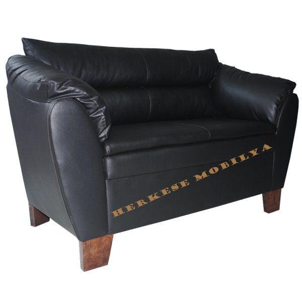 Roza Siyah Deri İkili Ofis Kanepesi