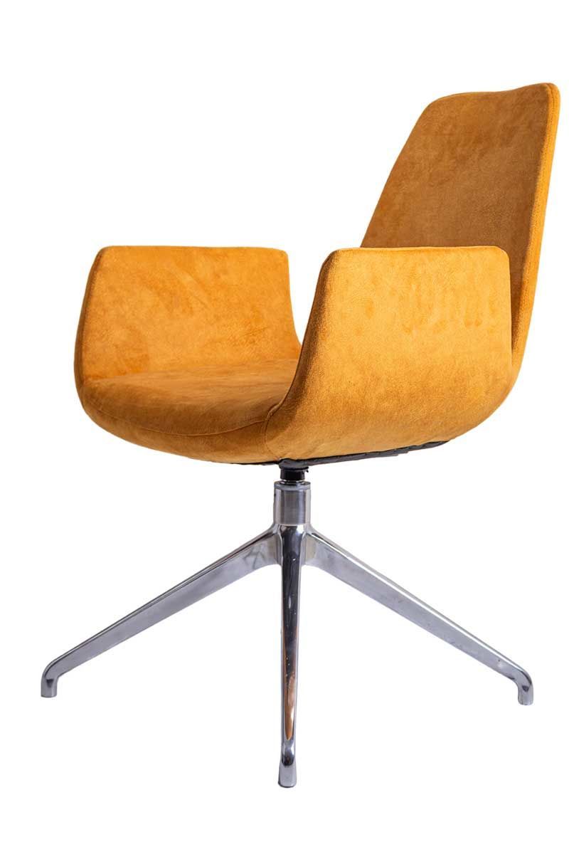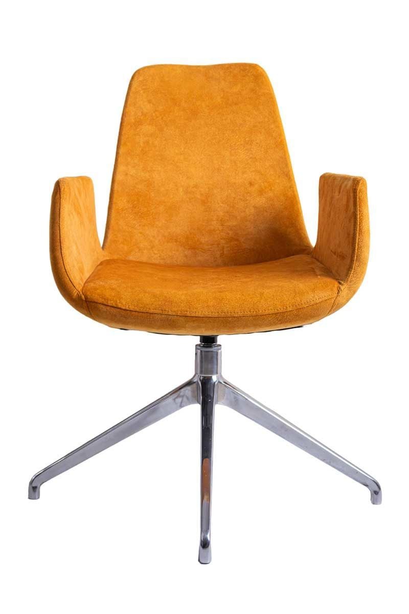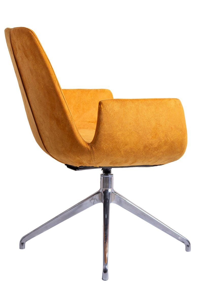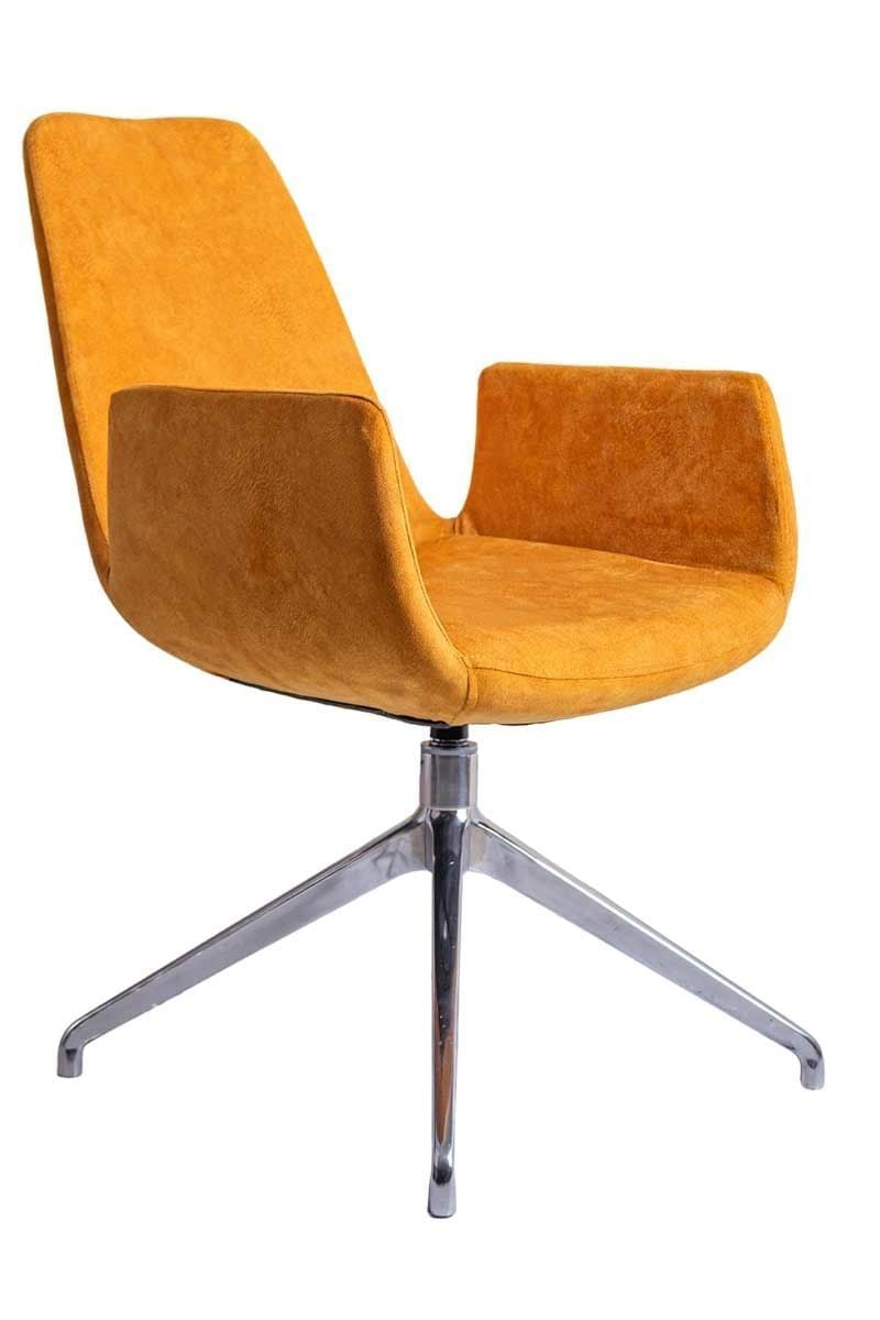Sote Turuncu Süet Deri Bekleme Koltuğu, çağdaş bekleme alanları ve lobi mekanları için özel olarak tasarlanmış, cesur rengi ve şık hatlarıyla dikkat çeken premium bir misafir koltuğudur. Canlı turuncu süet deri döşemesi ve parlak krom detaylarıyla modern karşılama alanlarına enerji ve karakter katan bu koltuk, hem görsel etki hem de davetkar bir konfor sunmaktadır.