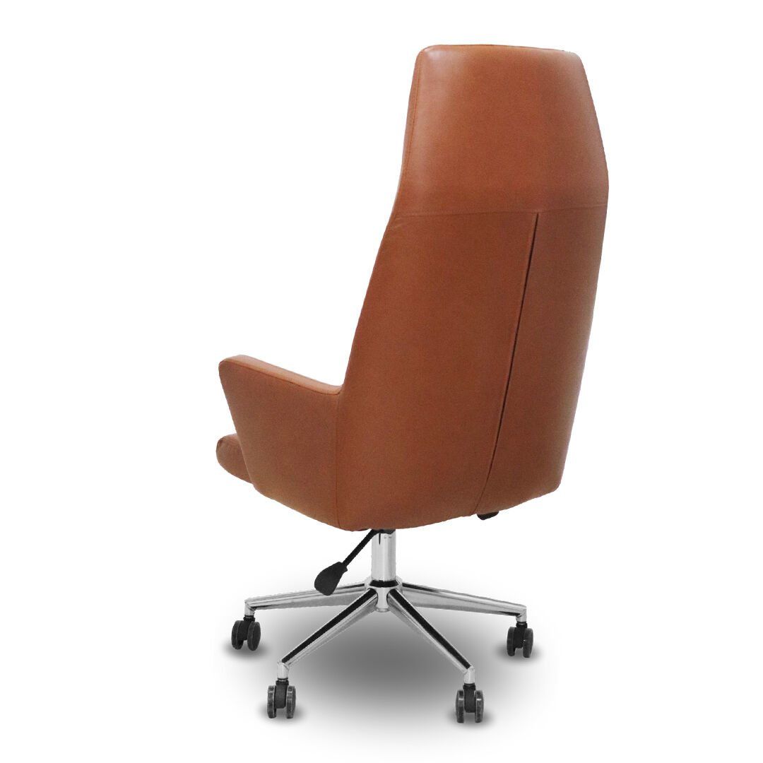 Yatay dikiş detaylarıyla hareketlendirilen yüksek sırt yapısı, omuz ve sırt bölgesini tam kavrayarak gün boyu ergonomik bir destek sağlar. Parlak krom yıldız ayağı, taba rengi deri ile modern bir kontrast oluşturur ve tasarıma hafiflik katar. West Yönetici Koltuğu, hantal olmayan, estetik ve fonksiyonel bir makam koltuğu arayanlar için mükemmel bir alternatiftir.