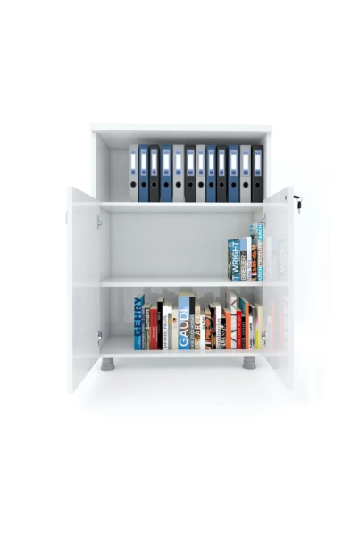 Görselde öne çıkan Yarım Kapaklı Dosya Dolabı, iki farklı kullanım alanı sunarak iş verimliliğinizi artırır. Üst kısımda yer alan açık raf bölmesi, gün içinde sık kullandığınız dosyalara, ajandalara veya dekoratif objelere hızlıca ulaşmanızı sağlar. Alt kısımda yer alan kilitli kapaklı bölme ise, önemli evraklarınızı veya kişisel eşyalarınızı güvenle ve göz önünden uzak bir şekilde muhafaza etmenize olanak tanır.