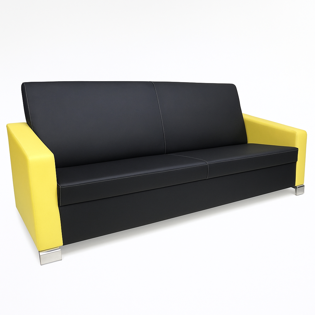 Z-400 Siyah Deri İkili Ofis Kanepesi, modern ofis ve cafe ortamları için tasarlanmış ergonomik bir mobilya çözümüdür. Yüksek kaliteli siyah deri kaplama ile kaplanmış bu ikili kanepe, dayanıklılık ve şıklık sunar. Kolçak kısımlarında sarı detaylar ile kontrast yaratarak görsel çekiciliği artırır. Ofis kanepesi kategorisinde yer alan bu ürün, bekleme alanları, resepsiyonlar veya playstation cafe gibi mekanlarda ideal kullanım sağlar. Konforlu oturma pozisyonu ile uzun süreli kullanımda bile rahatlık sunar, sırt ve kol destekleri sayesinde ergonomik bir deneyim yaşatır.