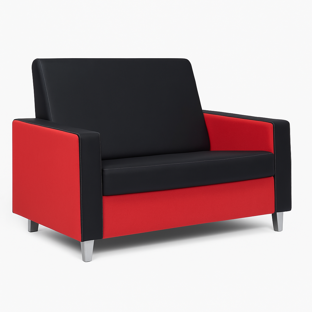 Ofis kanepesi olarak kategorize edilen bu model, görseldeki parlak metal ayaklar ile modern bir görünüm kazanır. Kumaş yüzeyin siyah tonu, ortamlara şıklık katar ve kırmızı kolçak detayları ile dikkat çeker. Sabit yapı sayesinde mekanizma arızası riski minimumdur. Ürün, cafe ve ofis lobi alanlarında tercih edilerek, ziyaretçilere konforlu bir bekleme deneyimi sunar. Dayanıklı malzemeleri ile uzun ömürlü kullanım vaat eder ve ofis mobilyası koleksiyonuna katkı sağlar.